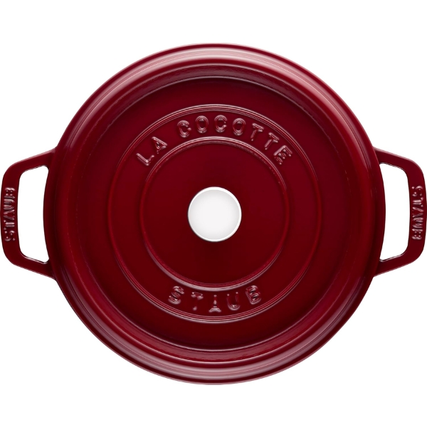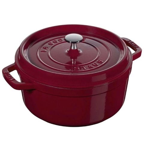 Nồi gang tròn Staub 20cm hình tròn, màu đỏ anh đào, bạn có thể chế biến các món hầm ngon nhất. Loại nồi đặc biệt này có nguồn gốc từ Pháp, nơi có truyền thống lâu đời.