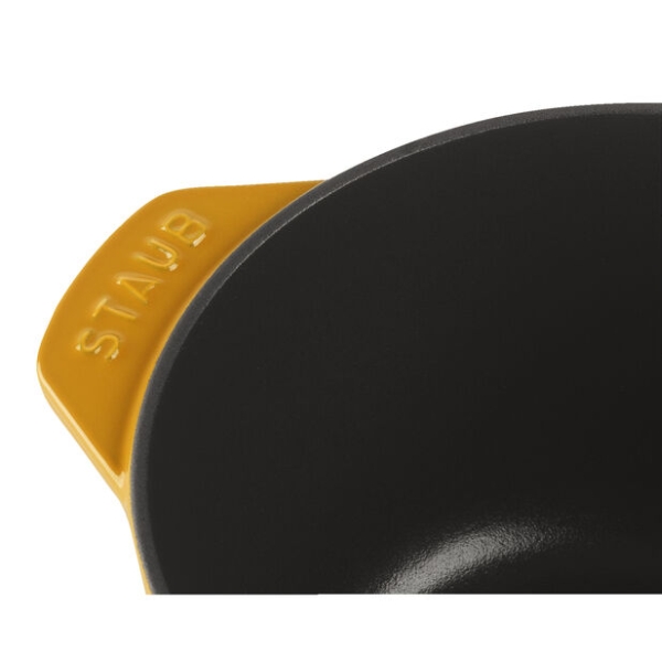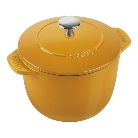 Nồi gang tròn Staub Chistera 16cm 1.75L - Màu Vàng mù tạt được làm từ gang đúc chất lượng cao, chống trầy xước và sứt mẻ tốt, dễ vệ sinh và có tuổi thọ cao. Nhờ chất liệu được sử dụng, dụng cụ nấu nướng luôn giữ được nhiệt độ, giữ ấm lâu sau khi lấy ra khỏi lò nướng hoặc bếp.