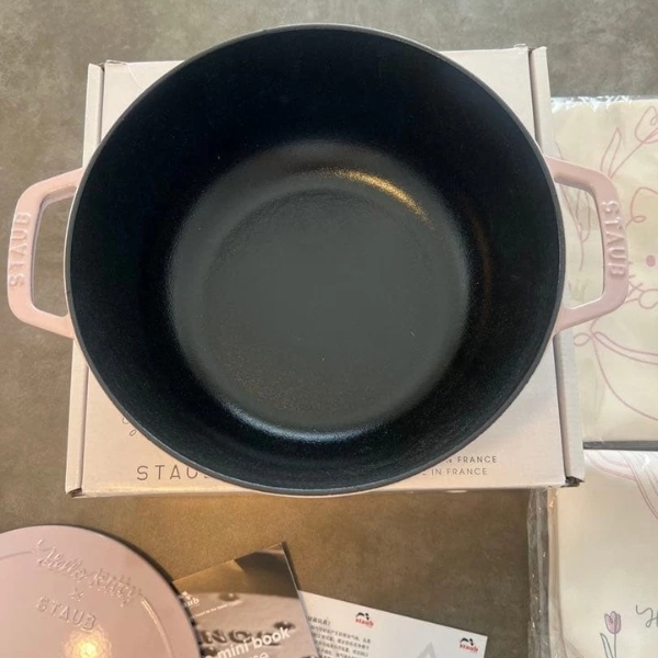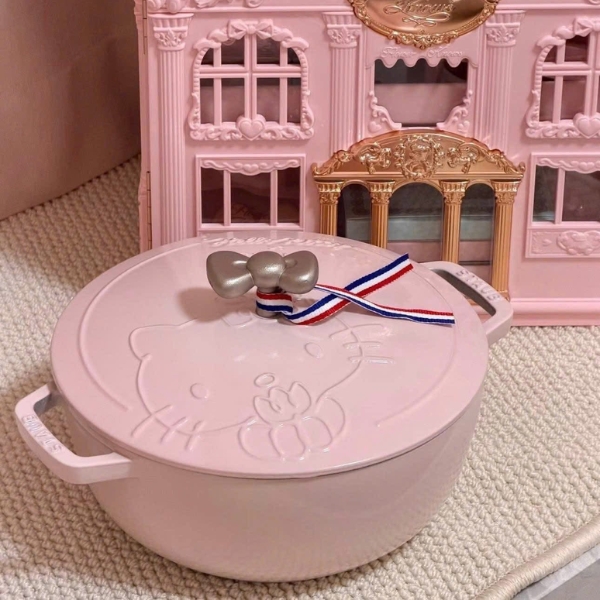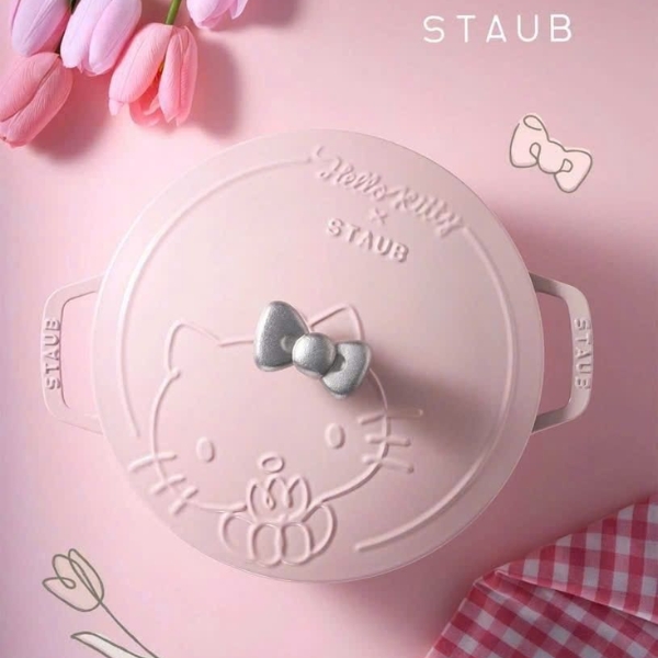 Nồi gang tròn Staub Hello Kitty Limited 24cm 3.6L - Màu hồng - Thương hiệu đồ dùng tráng men gang Pháp STAUB hợp tác với nhân vật nổi tiếng thế giới Hello Kitty để tạo ra mẫu Wanabe (Wa-NABE) 24cm. Vẻ quyến rũ màu hồng ngọt ngào, tan chảy của thiết kế "Sorberose" của Staub.