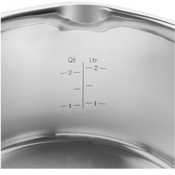 Nồi chảo có đường kính 16 cm và dung tích 1,5 lít cũng được tích hợp thang đo mực nước và vòi rót. Nồi xào có thể sử dụng trên mọi loại bếp, kể cả bếp từ, và cũng an toàn với máy rửa chén.