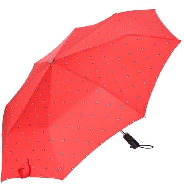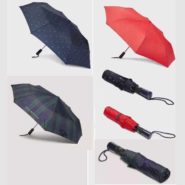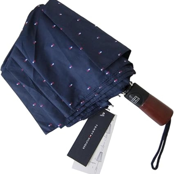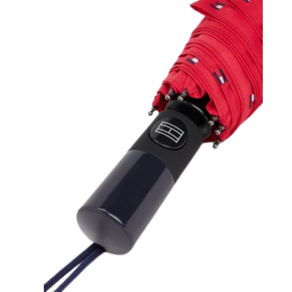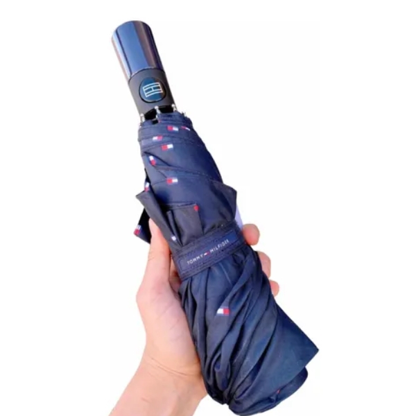 Ô Tommy Hilfiger được làm bằng vải chống thấm nước với logo thương hiệu được in nổi bật trên toàn bộ bề mặt. Cơ chế hoạt động hoàn toàn tự động (đóng mở) bằng cách nhấn nút trên tay cầm.