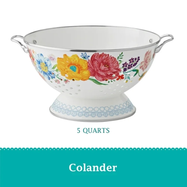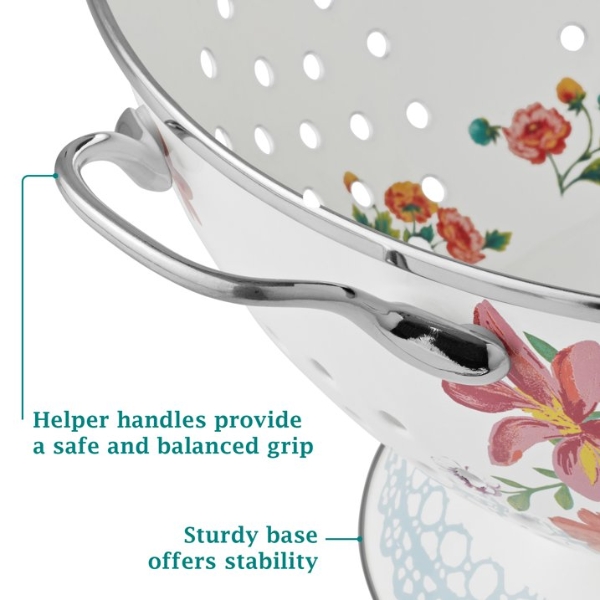 Tính năng Rổ lọc bằng thép tráng men The Pioneer Woman Brilliant Blooms 5 lít