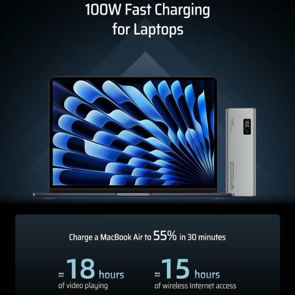 Pin dự phòng CUKTECH được trang bị bộ pin 20000mAh chất lượng, cung cấp đủ năng lượng để sạc MacBook Air một lần hoặc sạc iPhone 14 tới 3,3 lần. Đây là người bạn đồng hành tiện lợi và thiết thực, đảm bảo thời lượng pin không phải lo lắng!