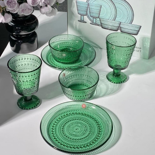 - 6 bát, 6 đĩa, 6 ly màu xanh lá