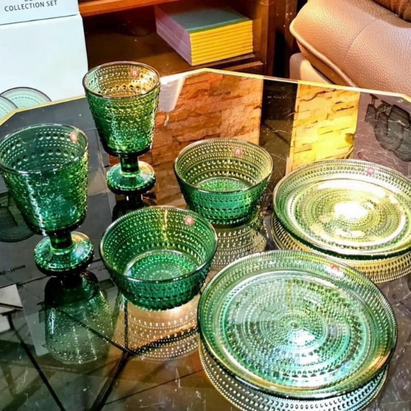 Set 18 món pha lê xanh