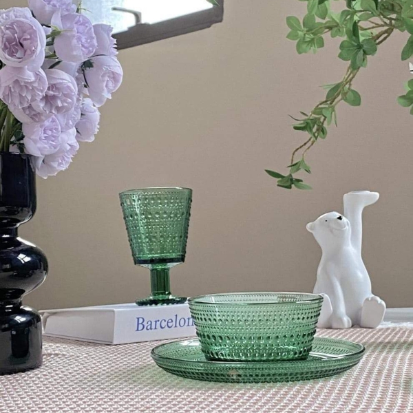 Set 18 món pha lê xanh Ranke Home - 6 bát, 6 đĩa, 6 ly