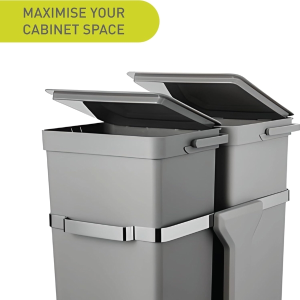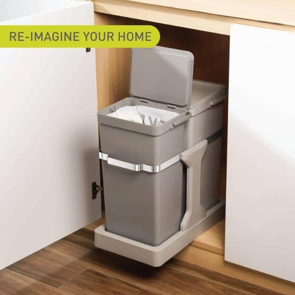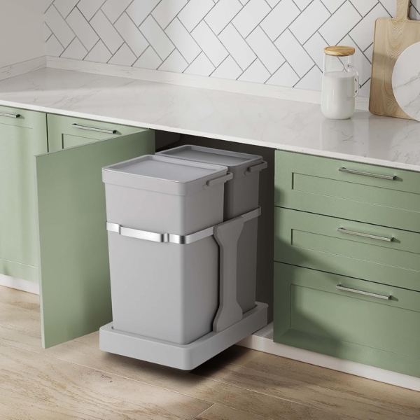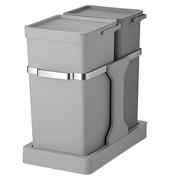 Thùng rác 35L (20L + 15L) này tối ưu hóa không gian tủ bếp với thiết kế kéo ra liền kề. Có thể lắp đặt vào tủ bếp tiêu chuẩn, giấu thùng rác để dễ dàng lấy ra. Nâng tầm căn bếp của bạn với giải pháp tiết kiệm không gian này.