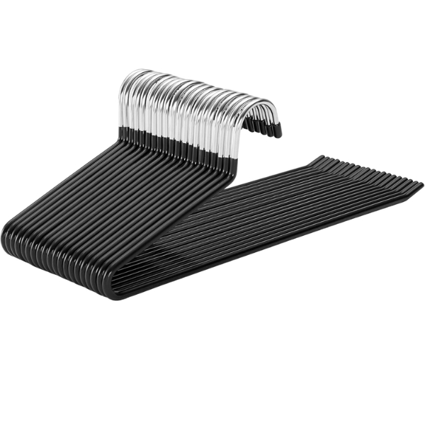 Mỗi móc treo trong bộ sản phẩm đều được phủ lớp PVC chống trượt, giúp quần áo không bị trượt xuống đáy tủ. Điều này giúp bạn không còn phải lo lắng về việc nhặt quần áo từ sàn tủ nữa, giữ cho không gian luôn sạch sẽ và ngăn nắp.
