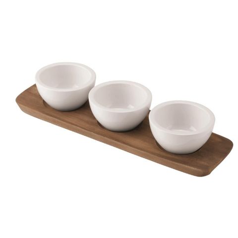 Set 3 bát nước chấm Villeroy & Boch kèm khay gỗ xinh xắn đựng nước chấm, nước sốt, gia vị, đồ ăn nhẹ,..rất tiện dụng đặt bàn ăn tạo nên sự sang trọng, nhẹ nhàng.