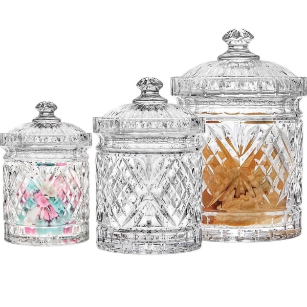 Set 3 hũ pha lê Dublin - 3 cỡ - màu trong suốt là lời chào đến di sản lâu đời, phong phú của thủy tinh cắt pha lê. Sự kết hợp tuyệt vời giữa sự xa hoa và họa tiết cắt sáng bóng góp phần tạo nên sự chế tác vượt thời gian độc đáo của những tác phẩm uy nghiêm này, mang đến nét tinh tế cho nơi ở của bạn.