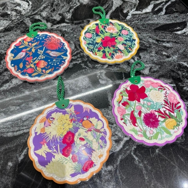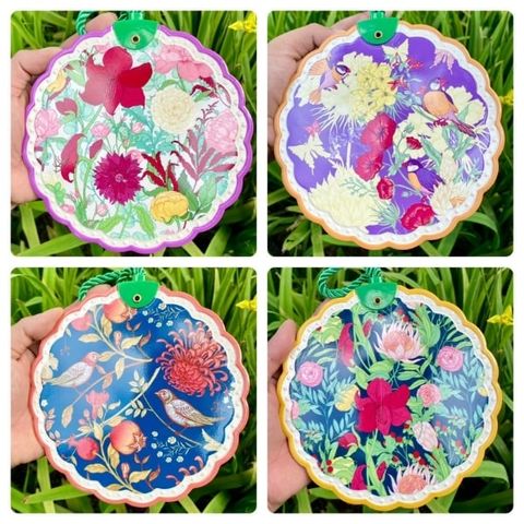 4 lót gốm đều có họa tiết khác nhau và màu sặc rực rỡ cho bàn ăn và căn bếp của bạn tựa như một bức tranh tuyệt đẹp