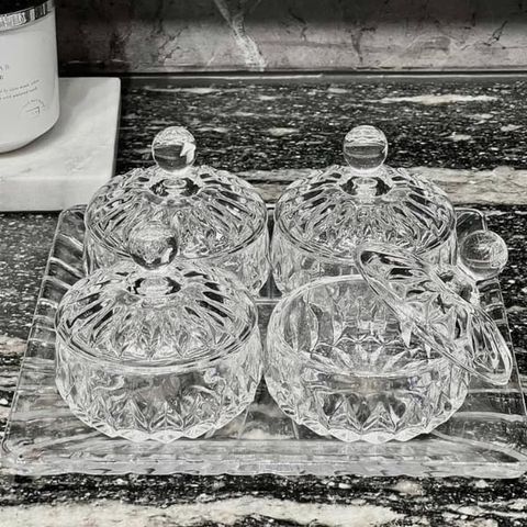 Set 4 thố pha lê tròn Vessen kèm khay vuông Mẫu 1