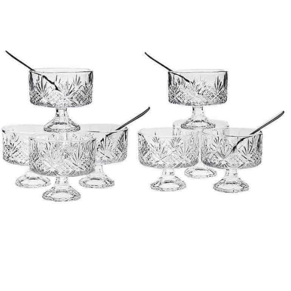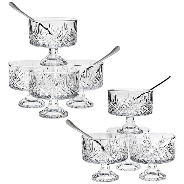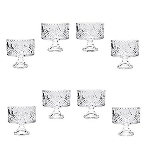 Những chiếc bát đựng tráng miệng bằng pha lê này có đế hình chân và có kích thước hoàn hảo để đựng các món tráng miệng kem, các loại hạt hoặc salad trái cây.