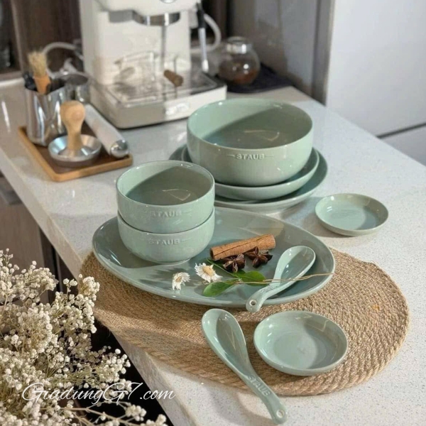 Set bát đĩa Staub 10 món - Màu Hồng/Xanh/Vàng – Thêm Ngọt Ngào Cho Bàn Ăn