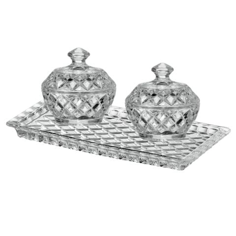 Set khay thố pha lê 3 món Bohemia (2 thố 10cm, 1 đĩa 19cm)