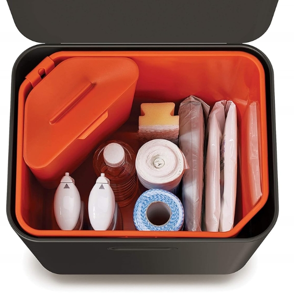- Thùng đựng phân hữu cơ có thể tháo rời 0,8 gallon (3 lít) có nắp có thể được cất giữ trong ngăn đựng rác thải chung, ngăn kéo đa năng hoặc trên quầy bếp