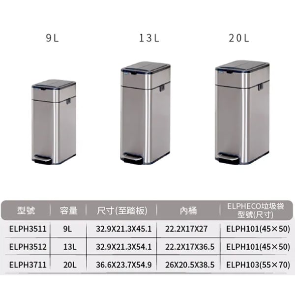 Đặc điểm Thùng rác đạp chân Elpheco ELPH3712 20 lít