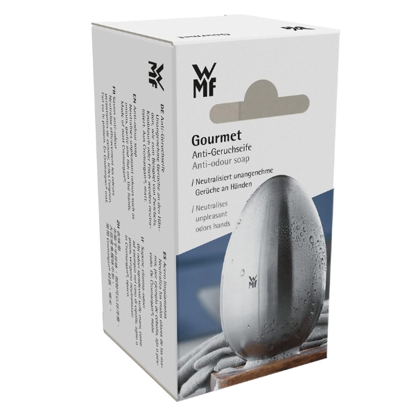 Bạn chỉ cần chà tay dưới nước nóng để mọi mùi hôi biến mất sau khi nấu. Trứng rửa tay khử mùi tủ lạnh WMF Được làm bằng Cromargan 18/10 bền và hợp vệ sinh.