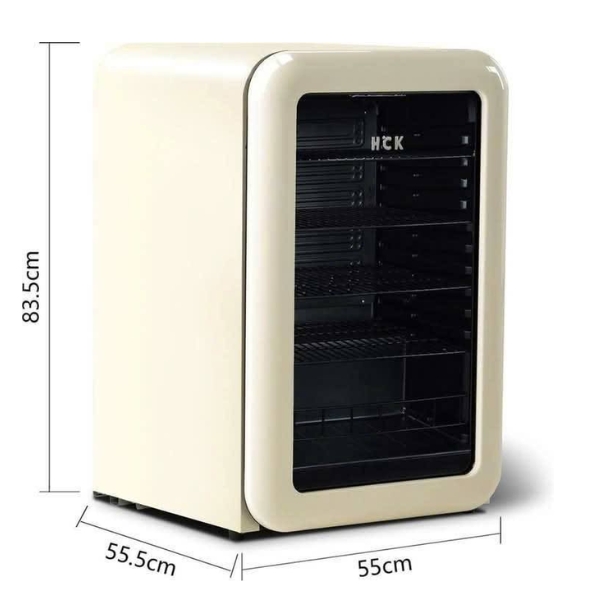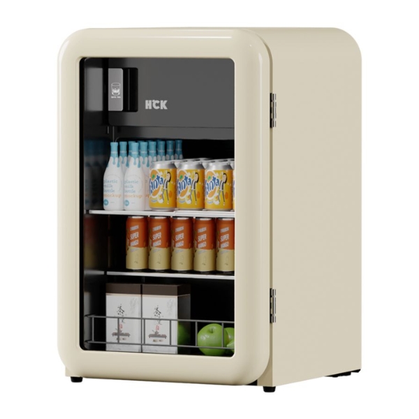 Tủ lạnh HCK 107L - Màu Be Mặt Kính sở hữu vẻ ngoài cổ điển đầy phong cách và dung tích lưu trữ thoải mái, hoàn hảo cho người độc thân hoặc gia đình nhỏ.