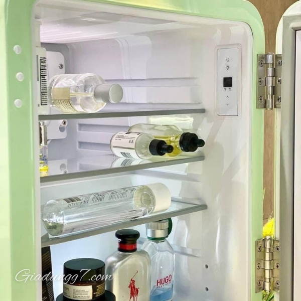 - Tủ lạnh mini này không chỉ giúp bảo quản mỹ phẩm, nước hoa, đồ dưỡng da và sữa cho em bé mà còn decor không gian thêm sang trọng với các đường nét retro & vintage tinh tế.