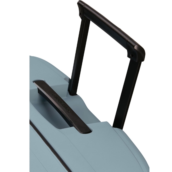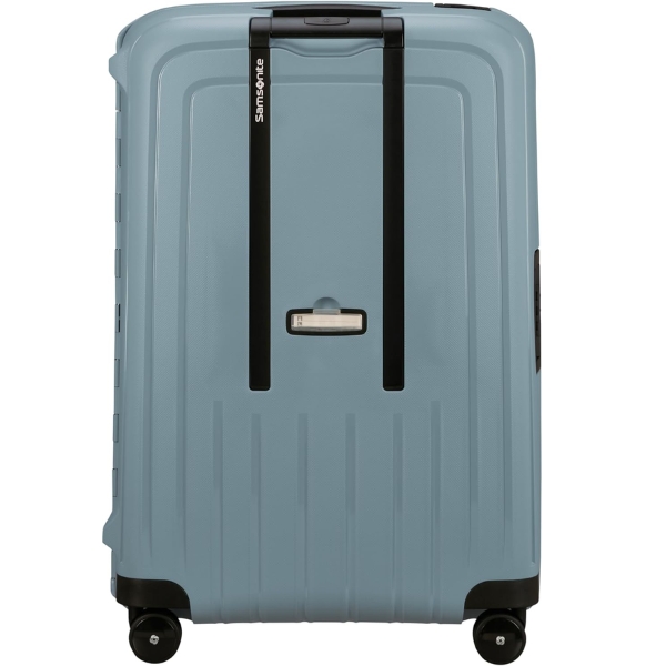 Vali Samsonite S'Cure Spinner màu xanh Ice blue thiết kế các góc cạnh đều trơn, tránh sắc nhọn, an toàn khi sử dụng, tay kéo thuận tiện